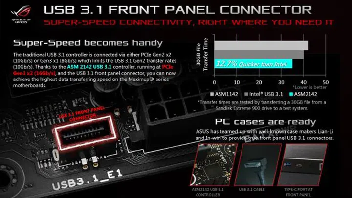 Naturally, these motherboards are also Intel Optane memory ready, making them some of the first few motherboards that will be compatible with Intel’s 3D Xpoint memory. The new motherboards comes with a USB 3.1 front panel connector that runs on a specially designed ASM 2142 USB 3.1 controller that ASUS says allows transfer speeds to be 12.7 percent faster than Intel’s own USB 3.1 controller.