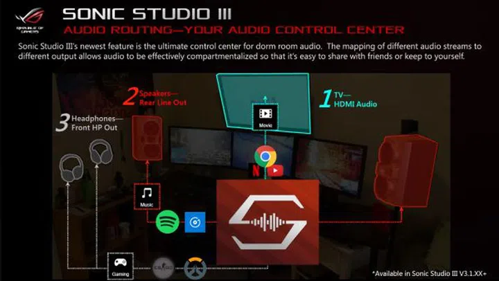 On that note, the new Sonic Studio III sound card that is built into the Maximus IX motherboards now allows users to map out their audio streams to different output, allowing users to compartmentalize their audio choices without any fuss.