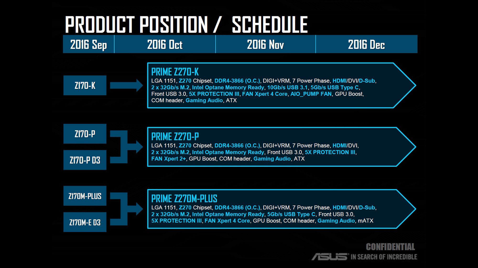 The list of motherboards that will be available under the ASUS Prime Z270 range of motherboards. You can click the image for a larger version of it.