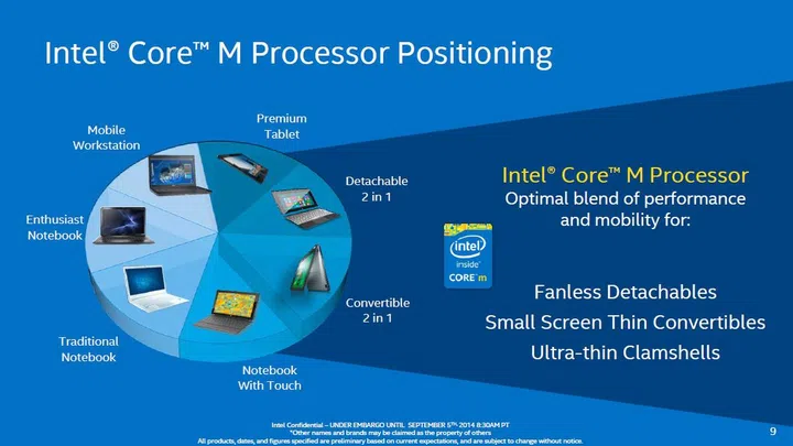 Intel has decided to launch its 5th generation Intel 'Broadwell' processors by introducing the Intel Core M processor. This family of mobile processors are targeted to power convertible 2-in-1 PCs that offer richer computing experiences than tablets.