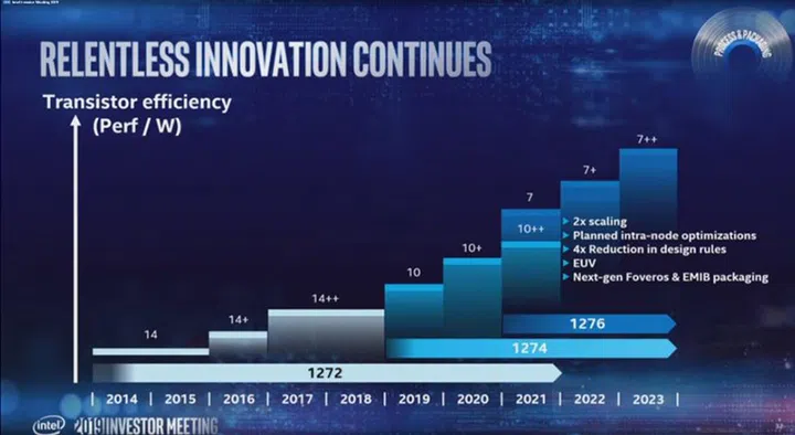 For example, 10nm++ will overlap with 7nm in 2021, but the latter will be more mature in 2022 with 7nm+.