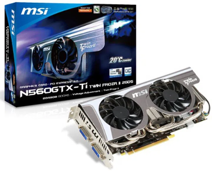 TAIPEI, Taiwan - MSI has released N560GTX-Ti Twin Frozr II 2GD5 and N560GTX-Ti Twin Frozr II 2GD5/OC with double memory to provide a better gaming experience with big HD monitors. The N560GTX-Ti Twin Frozr II 2GD5 series graphics card is equipped with the MSI exclusive Twin Frozr II thermal design that provides 20℃ lower temperatures.