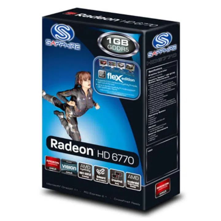 At the top of the range is the HD 6770 1GB FleX Edition, which additionally incorporates the SAPPHIRE exclusive feature to allow three DVI monitors to be connected in Eyefinity mode, without the need to use the DisplayPort output or active adapters, and allows up to four monitors to be enabled if the DisplayPort output is used.