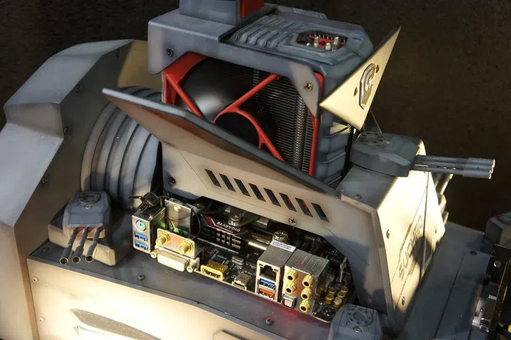 This is one of the more inventive and creative custom case mods we saw. There's even a handy holder for your gaming headphone.