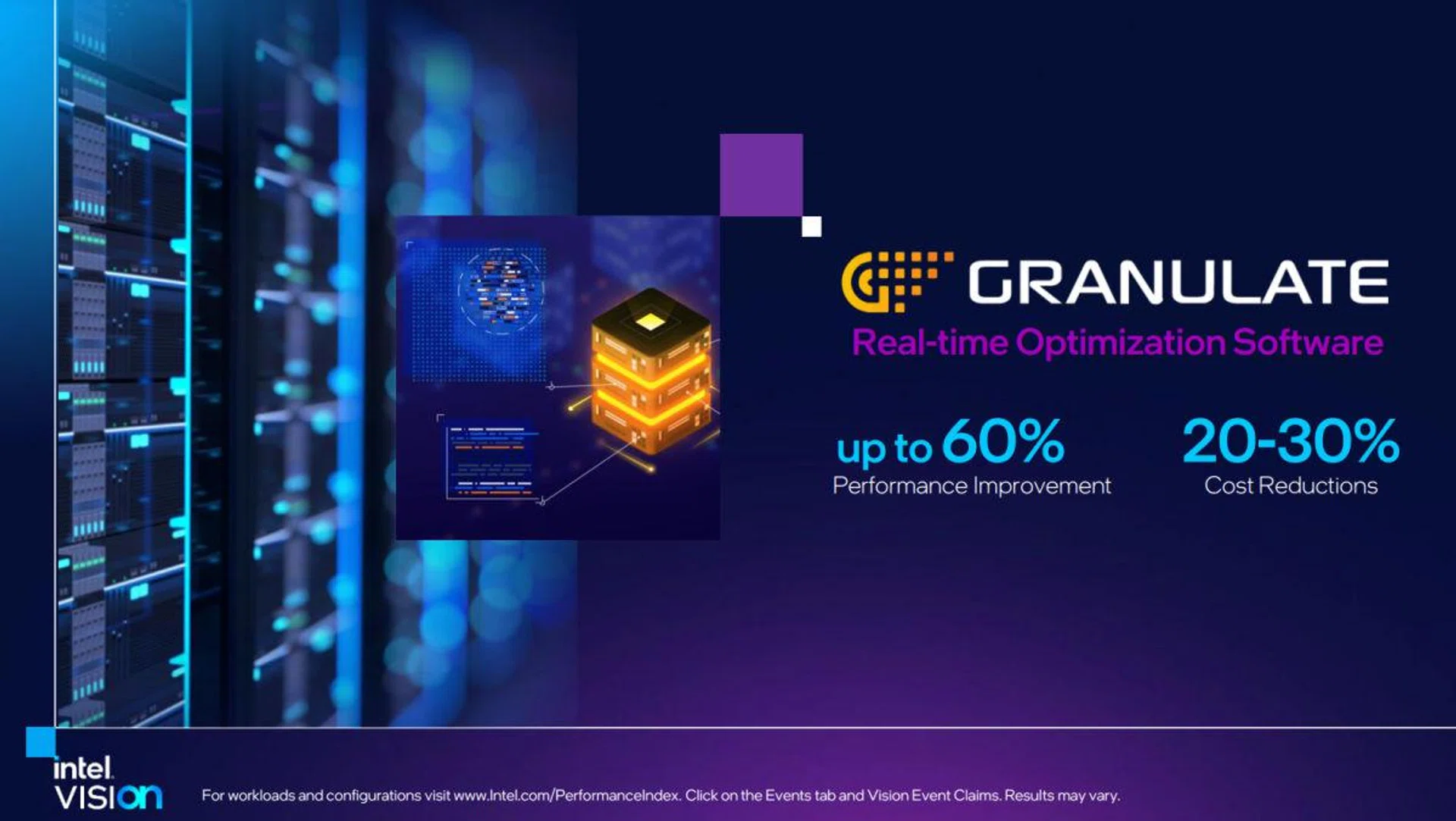 Sandra Rivera, EVP and GM of Intel’s Datacenter and AI Group shared a story of Salesforce, where software optimisations of workloads improved gen-on-gen throughputs by 53%, delivering better efficiency, improving CPU utilisation and performance-per-watt, shortened deployment times, and helped attain sustainability goals. Intel recently acquired Granulate, providing them with another powerful SaaS tool for customers to automate software optimisation. Granulate is said to be able to help improve software performance by up to 60% while costs by up to 30%, without any direct code changes.