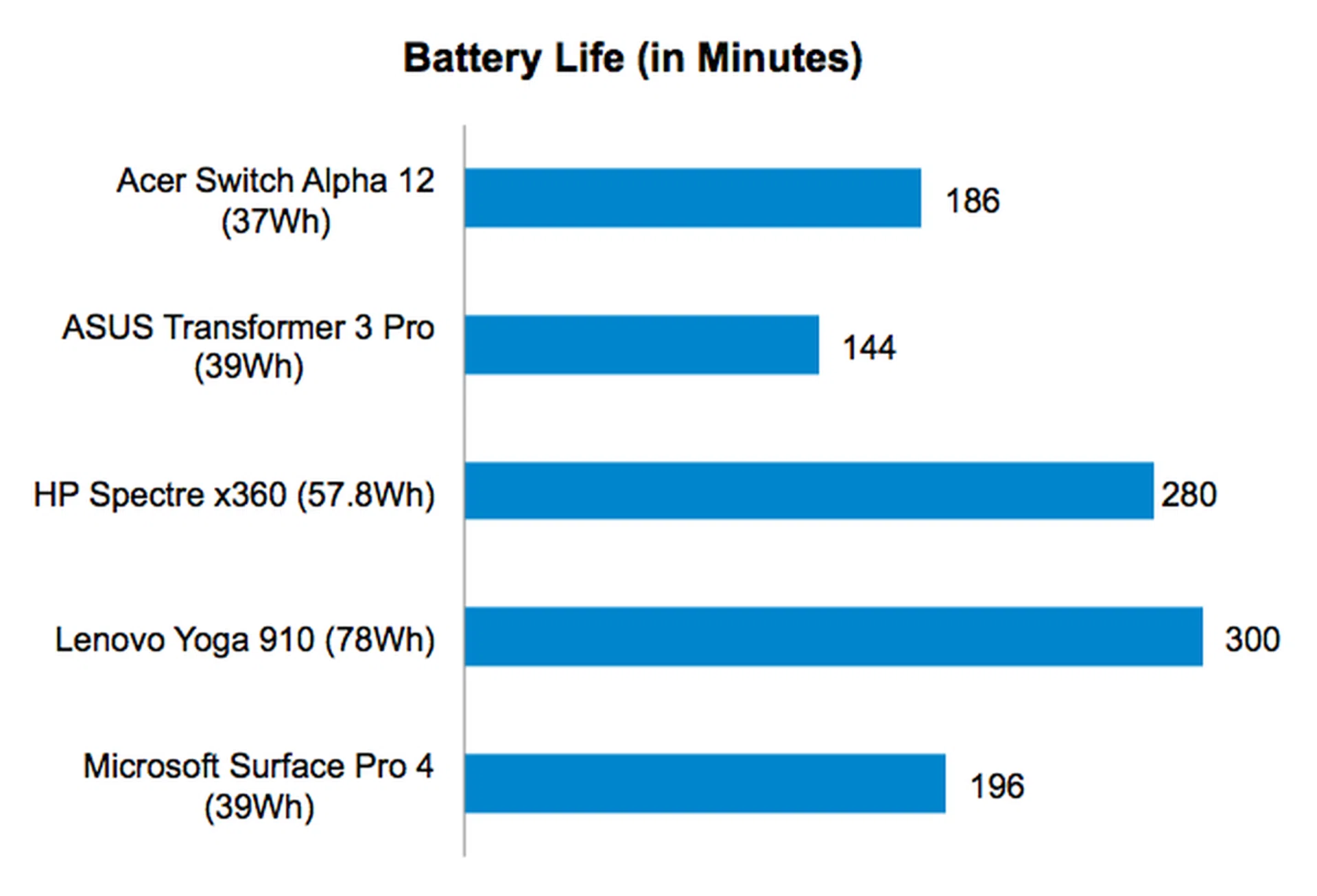 Model | Acer Switch Alpha 12 | ASUS Transformer 3 Pro | HP Spectre x360 | Lenovo Yoga 910 |