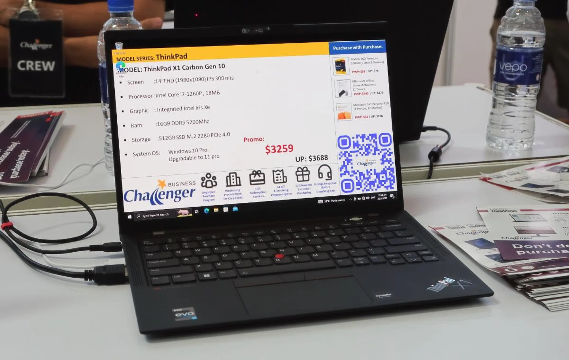 Ignore some of the specs and prices in the photo, because the Lenovo ThinkPad X1 Carbon at the show comes with a 14-inch 2.8K OLED display, an Intel Core i7-1260P processor, with 16GB of memory, and 512GB SSD. It also costs just S$2,999 (U.P S$3,688) and will come with a free Lenovo G32 32-inch QHD curved gaming monitor worth S$399.