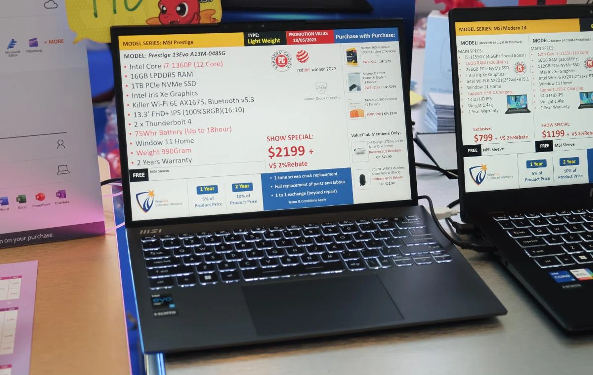 If you are looking for an ultra-lightweight notebook, check out the MSI Prestige 13 Evo. This notebook weighs just 990g. It features a 13.3-inch Full-HD display, an Intel Core i7-1360P processor, 16GB of memory, and a 1TB SSD. It also has Killer Wi-Fi 6E AX1675 and a large 75Wh battery. It's going for S$2,199.