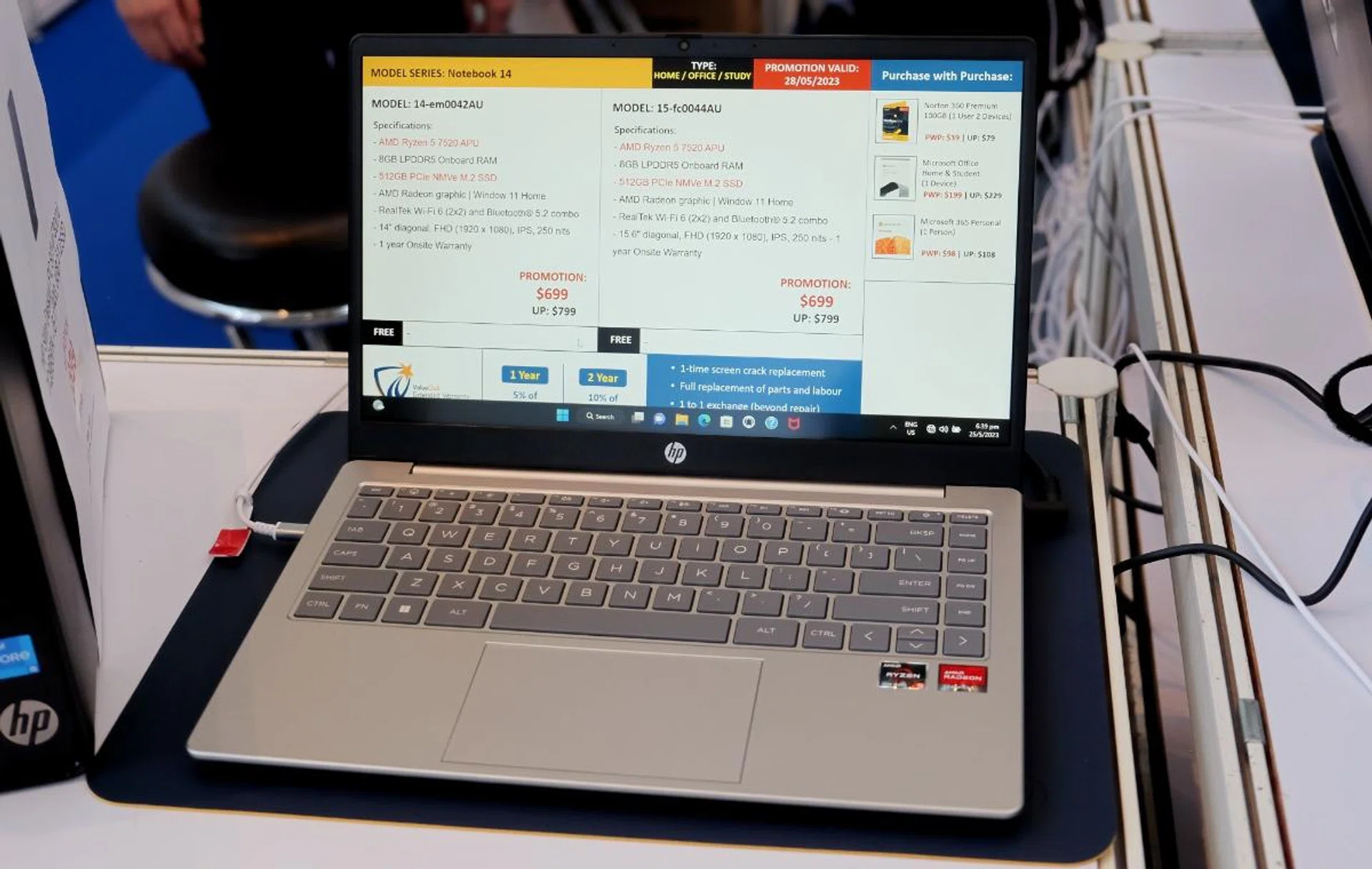 Another affordable notebook I found is the HP Laptop 14 and 15. Both models feature Full-HD displays and are powered by AMD's Ryzen 5 7520U processor. Both also have 8GB of memory and 512GB SSD storage. Regardless of which size you pick, it's S$699 (U.P. S$799).