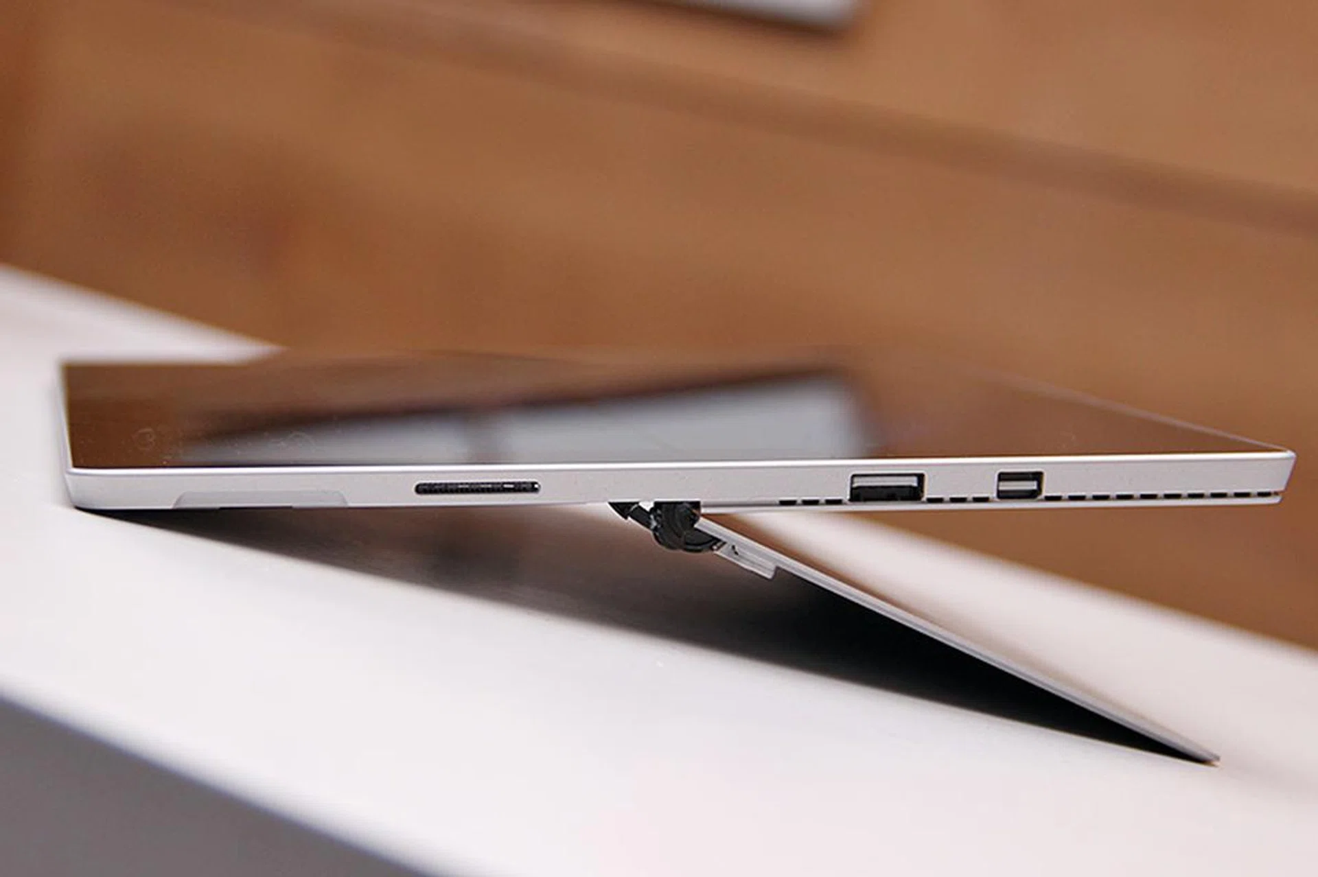 Another tentpole feature of the Surface Pro 4 is its 12.3-inch, 10-point multi-touch display, which is both bigger and thinner than the one we saw on the Pro 3. Microsoft even managed to up its resolution to 2,736 x 1,824 pixels. The thinner 0.4mm Gorilla Glass 4 also helps the tablet to achieve its 8.4mm thickness, down from its predecessor’s 9.1mm. In my brief hands-on, this thinner display stack definitely aids in the writing experience. And oh, the capacitive Windows button is now gone, so you’ll need to rely on the onscreen button.