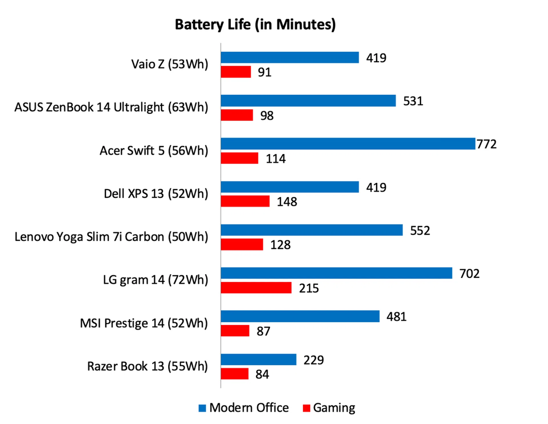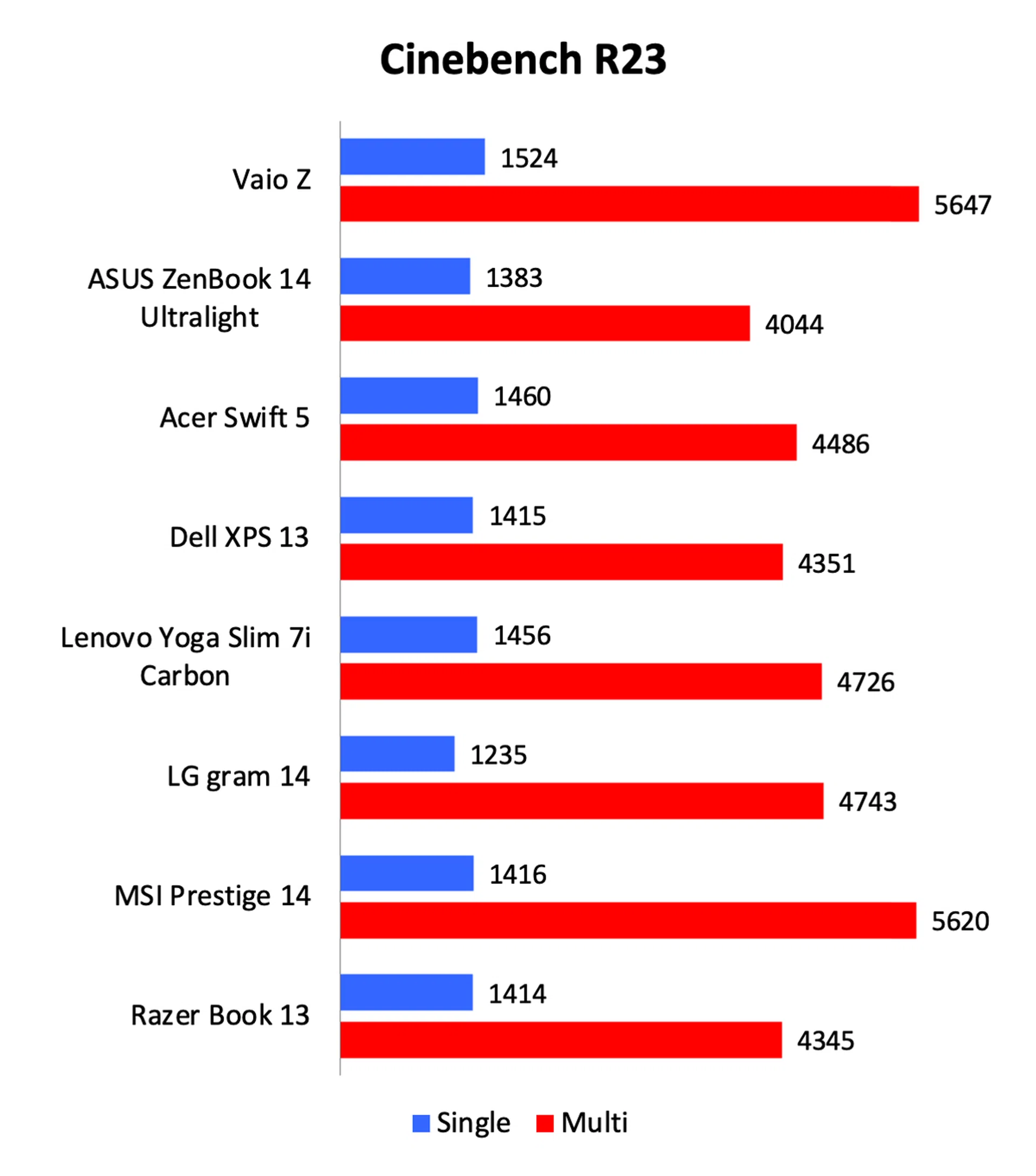 As the results show, the Vaio Z puts up better numbers than your typical U-series-powered ultraportable notebook. Battery life isn’t bad either considering it has a 4K display and battery capacity is a modest 53Wh. But it should be noted that the Vaio Z gets really loud when it's taxed, which isn't surprising considering it crams a higher rated TDP processor into a slim form factor.