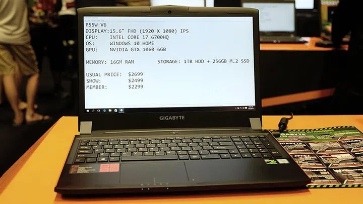 For more power, you can look to the Gigabyte P57X, a 17.3-inch notebook with an NVIDIA GeForce GTX 1070. Other specifications include an Intel Core i7-6700HQ processor, 16GB of RAM, and a 256GB SSD and 1TB SSD. It can be yours for S$2,999, compared to S$3,399 outside the show. And if you’re a GameProSG member, the price falls to just S$2,799.