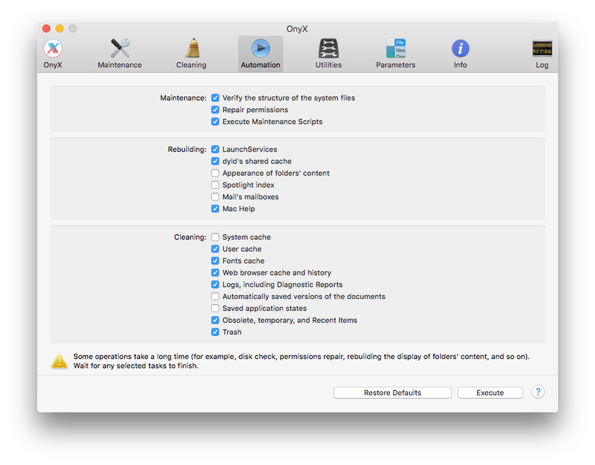 Sure, Mac users don’t have to deal with defragging, but there are still things you can do to optimize your Mac. OnyX from Titanium Software is a free app that you can use to perform system maintenance and clean up. Another (paid) option is MacPaw’s CleanMyMac X.
