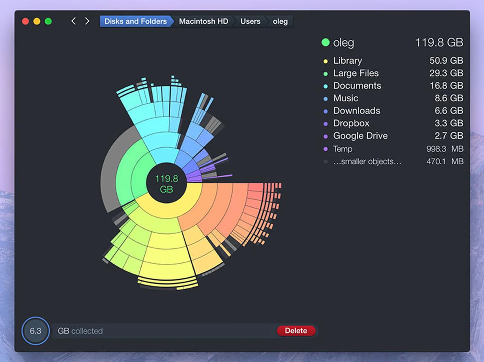 Delete large, old files off your Mac to free up disk space. DaisyDisk (S$14.98) is a beautiful app that analyzes and then visualizes the biggest files taking up space on your hard drive. It can even do the same for your external drives.