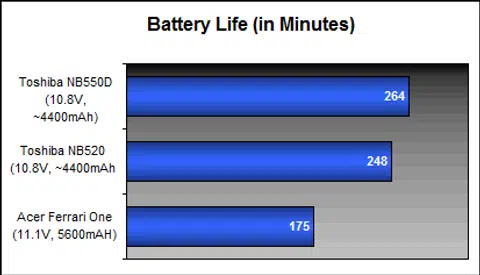Specifications/Notebook | Toshiba NB520 | Toshiba NB550D | Acer Ferrari One | ASRock Nettop ION330-BD |