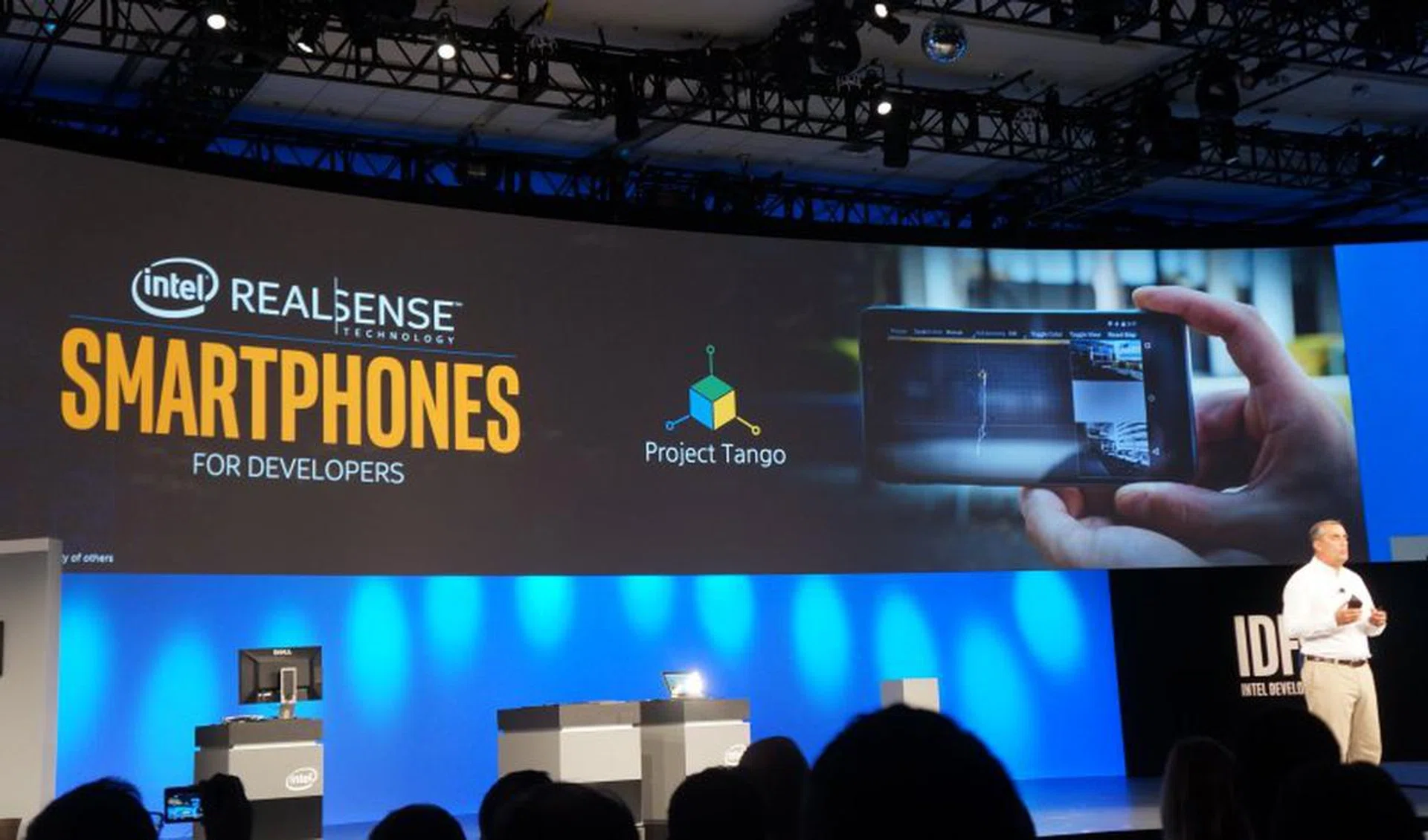This time around, the interesting announcement was the collaboration with Google to advance mobile depth sensing capabilities from Google’s Project Tango to produce an Android smartphone developer kit. LG was once reported to bring about Project Tango to consumers, but would that effort get redirected for developers or will there be another hardware vendor? It is early days yet, so further details are sketchy at the moment Meanwhile, check out another live demo from the IDF 2015 keynote:-