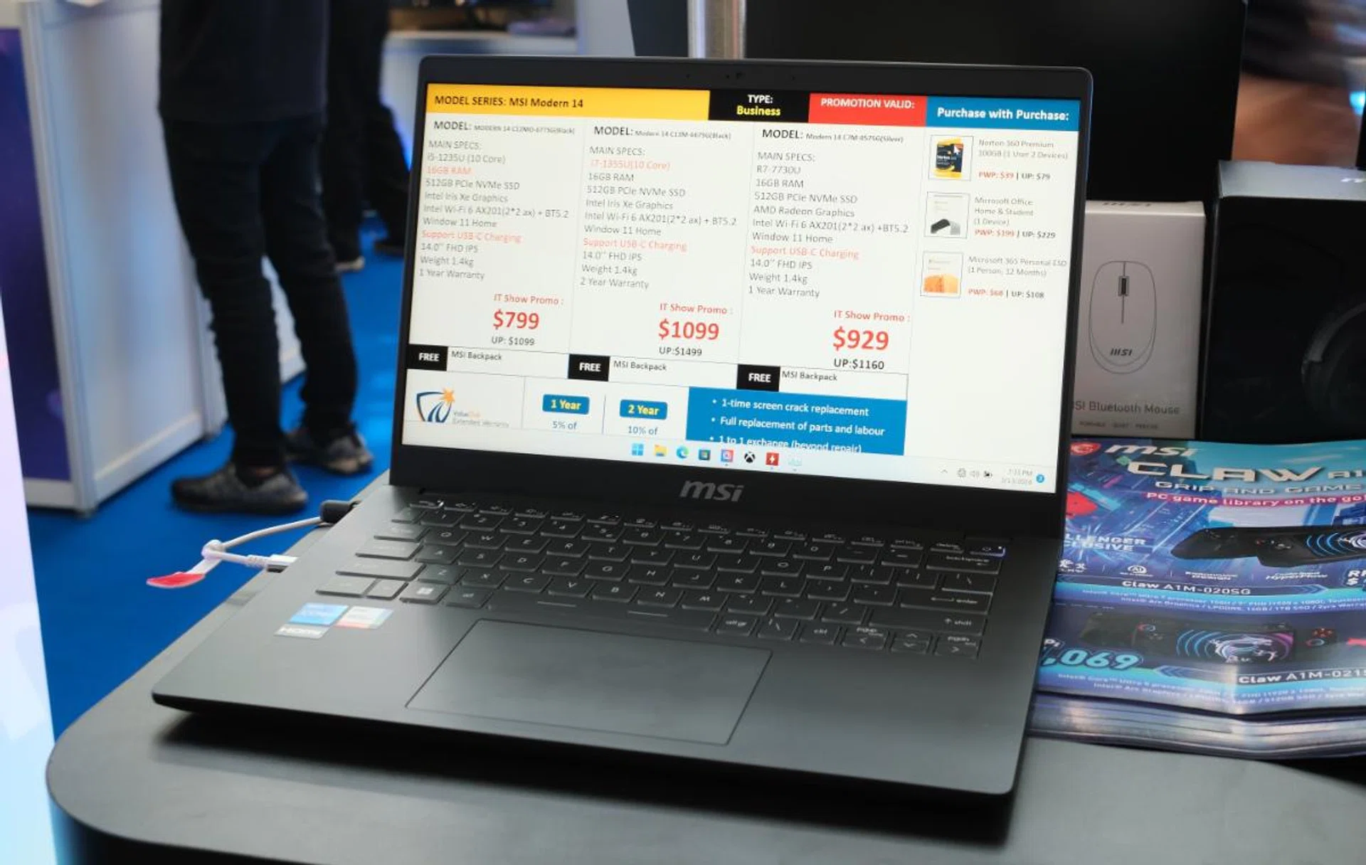 Here's another ultraportable notebook that we found for under a grand. This is the MSI Modern 14 and it has a 14-inch FHD display and weighs just 1.4kg. It is powered by the Intel Core i5-1235U processor and has 16GB of memory and 512GB of SSD storage. It's going for S$799 (U.P. S$1,099) and comes with a free MSI backpack.