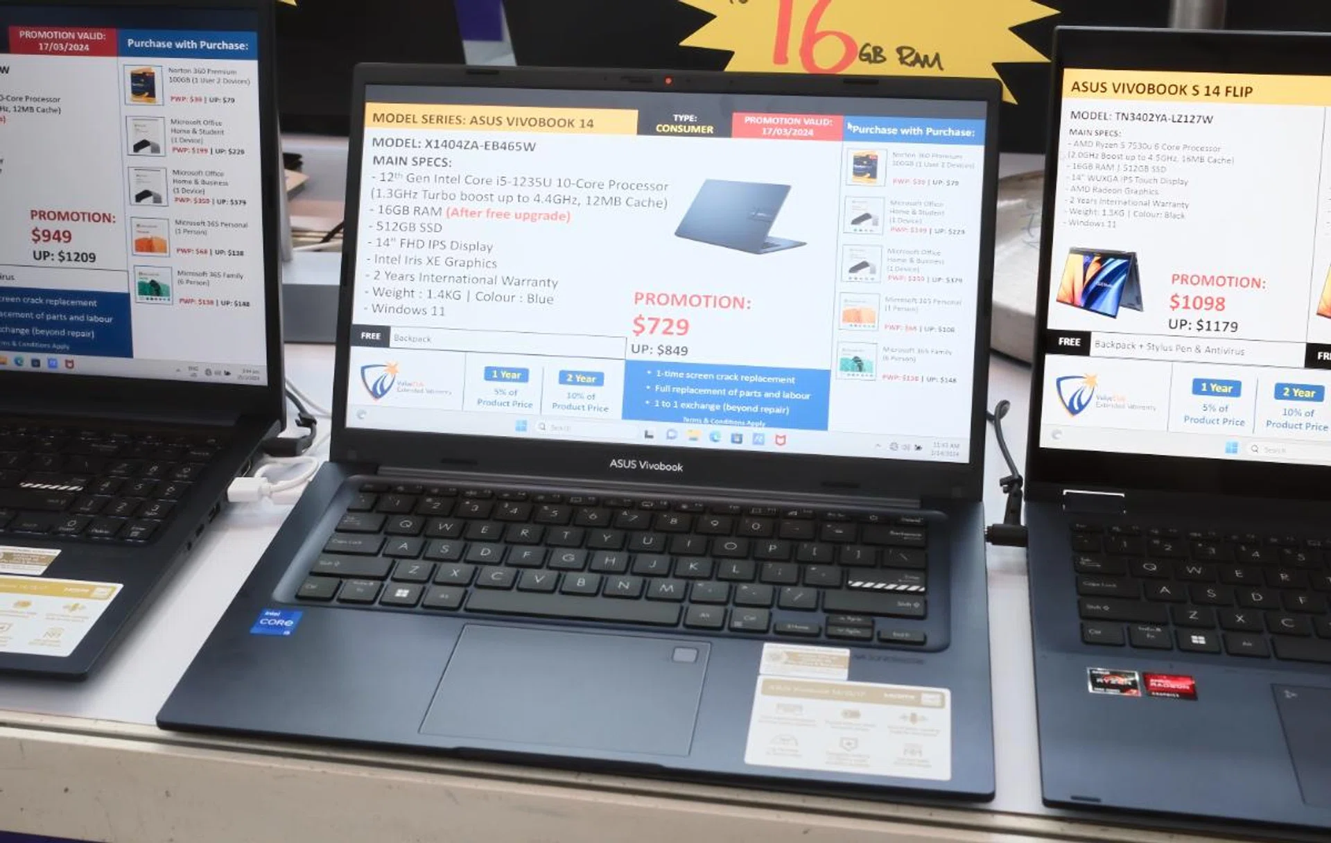 Those looking for a basic 14-inch notebook should definitely check out the ASUS Vivobook 14. This model has an older Intel Core i5-1235U processor, 16GB of memory, and a 512GB SSD. It's not going to win any benchmarking races, but it should more than suffice for daily tasks like web browsing, streaming content, schoolwork, and productivity. It's going for S$729 (U.P. S$849) and comes with a free backpack.