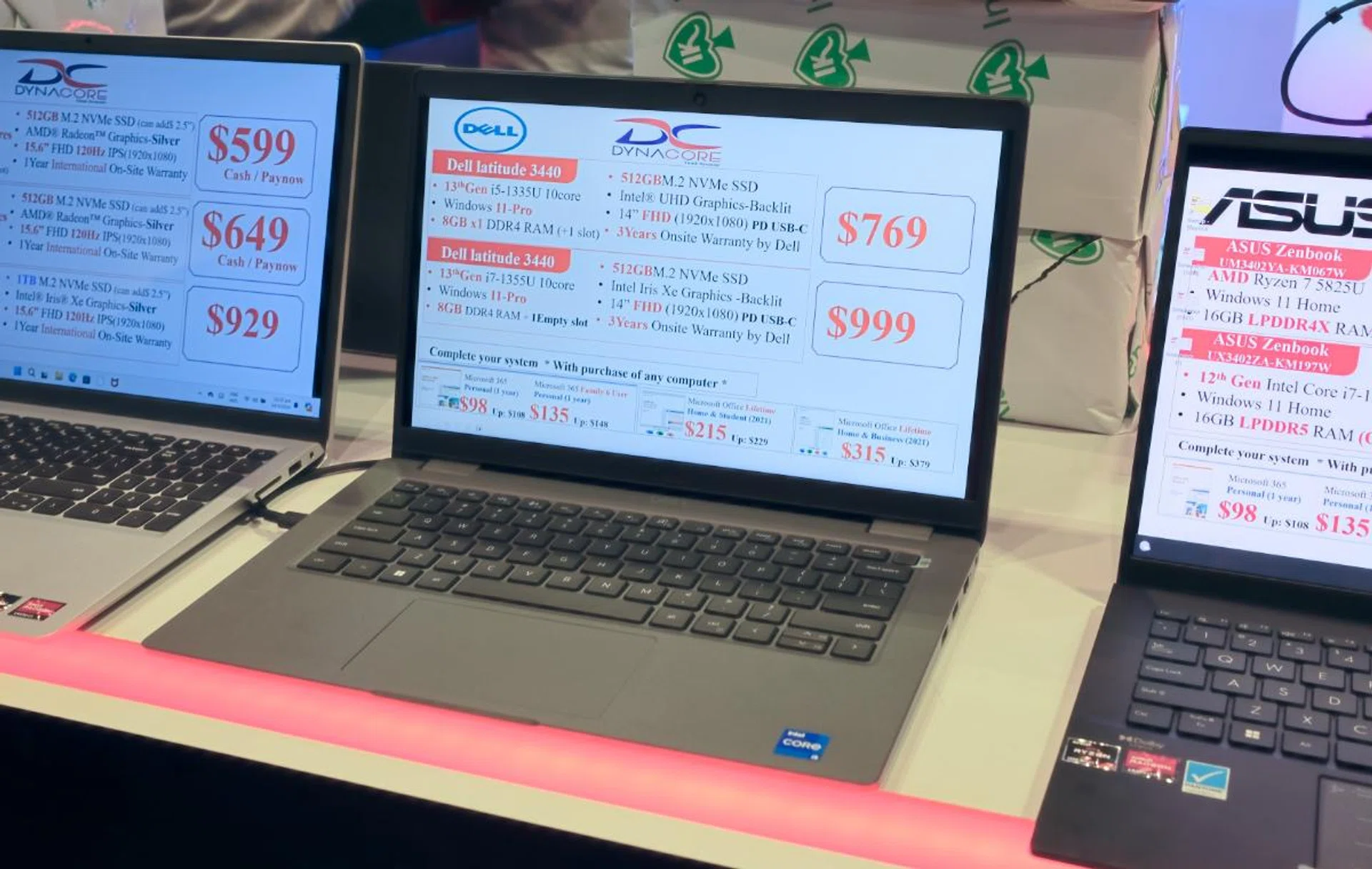 There's no shortage of notebooks under S$1,000 at the show. Another one that I found is the Dell Latitude 3440. This has an Intel Core i5-1335U processor, 8GB of memory, and 512GB of SSD storage. The display is 14 inches in size and supports FHD resolution. What's interesting is that it has 3 years of on-site warranty. It's going for S$769.