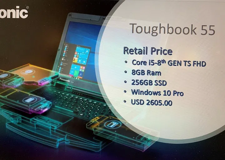 A standout feature for any Toughbook is its rugged and durable build and the new Panasonic Toughbook 55's chassis features MIL-STD and IP53 certified magnesium alloy design with a built-in carrying handle.