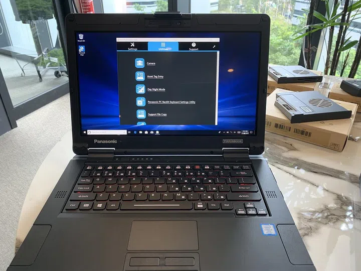 From the front, the Panasonic Toughbook 55 looks like any other office laptop albeit with wider bezels than those found on newer laptops these days. Battery life sounds impressive with the company claiming that the Toughbook 55 lasted 20 hours during a benchmarking test. Also, note the old-school trackpad design, which is designed for reliability than pleasing people with one of the new-fangled single-piece glass trackpads.