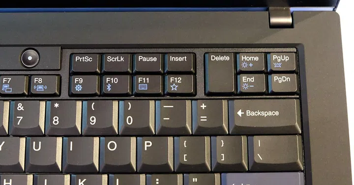 Above the function keys are additional keys not commonly found on most notebooks today. Not also the blue accents used for the sub-keys, which contributes to the notebook's retro looks.
