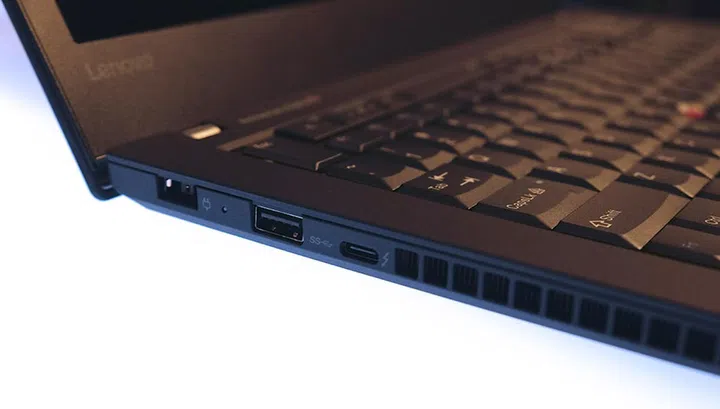 On the left side, there's USB 3.0 port and a USB Type-C port that supports Thunderbolt 3 technology.
