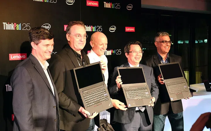 Proudly showing off the Lenovo ThinkPad Anniversary Edition 25 are key executives behind the ThinkPad. Second from right is Arimasa Naitoh, widely regarded to be the father of the ThinkPad. Second from left is David Hill, the former Chief Design Officer, who led the design team for ThinkPad since its inception. Although he retired recently, it was his idea to release a limited edition ThinkPad based on the design of the very first ThinkPad.