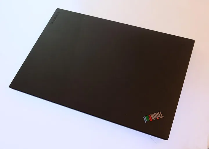 Unique to the Lenovo ThinkPad Anniversary Edition 25 is a rubberized cover that is soft to the touch. Note also the multicolored ThinkPad logo at the top corner of the notebook.