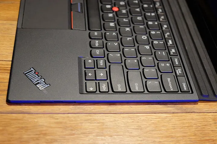 The detachable ThinkPad keyboard barely adds any extra width to the tablet. It snaps on via a magnetic hinge and looks almost every inch like a regular keyboard on the other ThinkPad X1 devices.