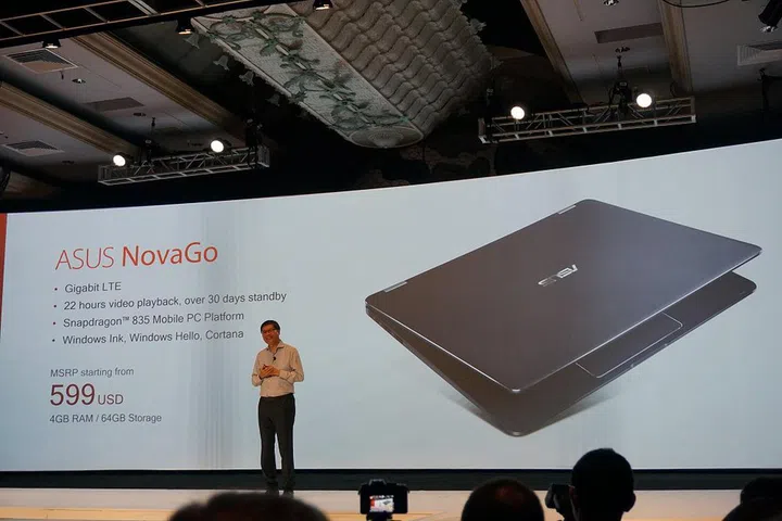 Jerry Shen, CEO of ASUS, proudly launched the world’s first Gigabit LTE laptop running a Windows OS, powered by Qualcomm Snapdragon 835 mobile platform and Qualcomm Snapdragon X16 LTE modem. This is the ASUS NovaGo in close-up photos.