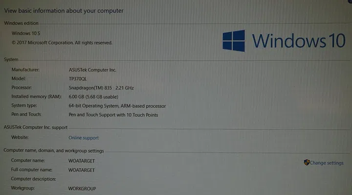 Here’s a peek at the system properties. There is no 6GB RAM variant, so this could be a prototype configuration. The official configuration is 4GB or 8GB RAM. And yes, it runs on Windows 10 S, but as we’ve covered before, it can be unlocked to a Windows 10 Pro OS.
