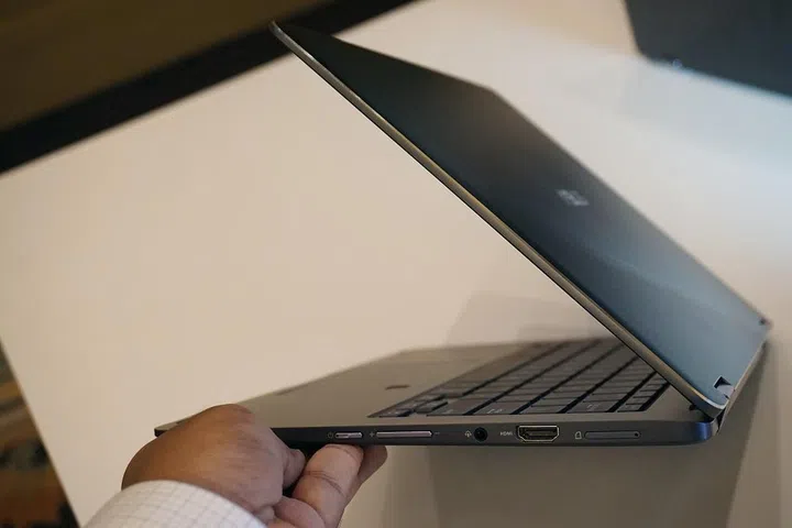 Given that it’s a convertible laptop and at its price point, you’ll be happy to know that it is 14.9mm thin and weighs 1.39kg. The right profile view sees the power button, volume rocker, headphones output, HDMI output and a nano-SIM slot (certain variants will have eSIM support too).