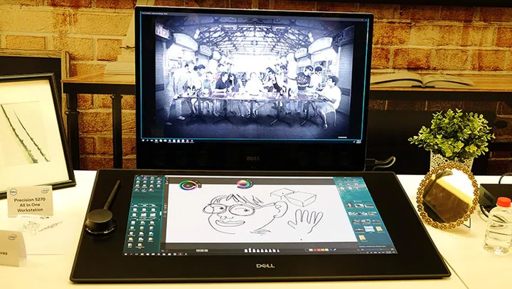 The Canvas is probably best paired with another display, even though it can function as a PC's sole screen as well. Unfortunately, Dell has not yet revealed any details on price yet, but it did say availability would be sometime in Q2 2017. Seen here with the Canvas is Dell's Precision 5720 AIO, which comes with a total of 10 speakers (six on the front, and four bottom-firing subwoofers).