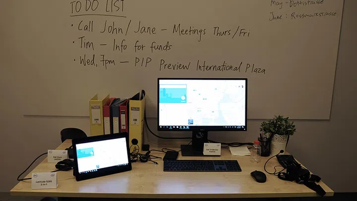 Here's what Dell envisions for the desk-centric worker who doesn't move around much throughout the day. These workers demand maximum comfort in confined spaces, which is why Dell has decked out the space with a wireless keyboard and mouse to minimize clutter.