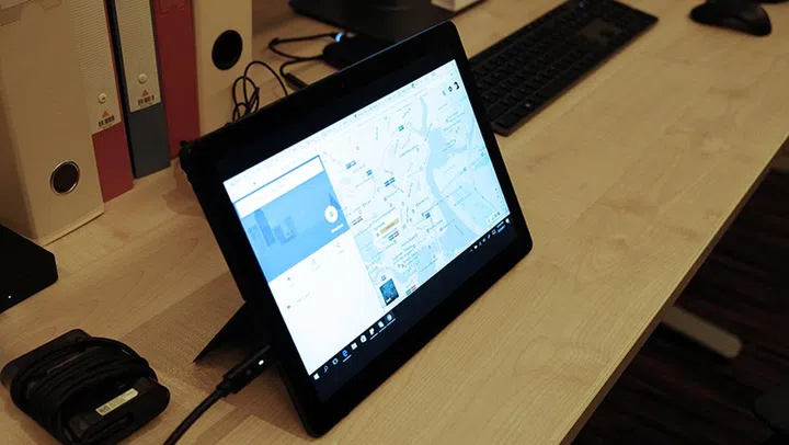 The Dell Latitude 2-in-1 is a business-focused convertible with nifty features for convenience, such as button triggers on the bottom that automatically release the kickstand when the device is pushed against the table surface.