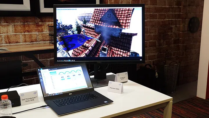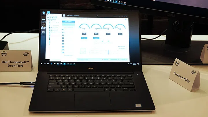 The 15-inch Dell Precision 5520 workstation notebook can be equipped with up to an Intel Xeon E3-1505M v6 processor (3.0GHz, 8MB L3 cache) and NVIDIA Quadro M1200 GPU, making it a good choice for content creators on the go. Dell showed off the notebook running the Uniengine Heaven benchmark without the GPU hitting 100 per cent load.