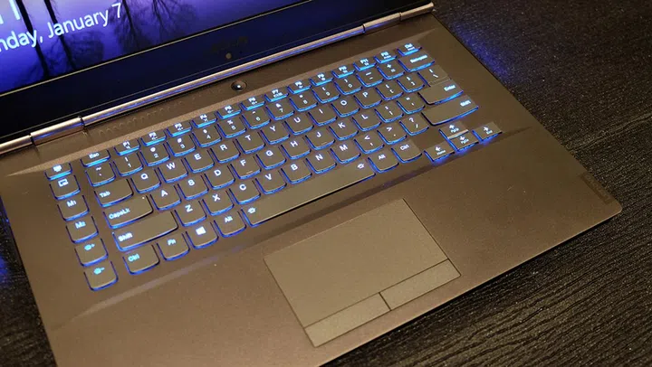 The Legion Y740 features a 1080p 144Hz Dolby Vision display with NVIDIA G-Sync support. It's powered by an Intel Core i7-8750H and a GeForce RTX 2080 Max-Q, while the dual-fan cooling system channels air through four illuminated vents.
