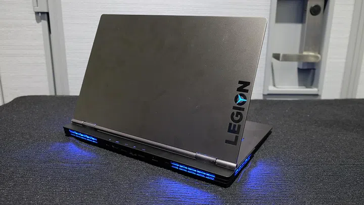 Lenovo has worked an illuminated Legion logo into the branding on the lid, one of the small design decisions that show that this is still a gaming laptop at heart.