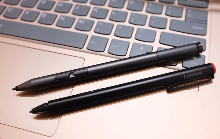 The new Active Pen 2 (top) has been redesigned with a longer overall length. The pen clip has also been removed and the two side buttons repositioned closer to the pen tip. The top button can be assigned to open up your favorite sketch app. The Active Pen 2 also has twice the level of pressure sensitivity (4,096 vs. 2,048) as its predecessor for a more paper-like writing and drawing experience.