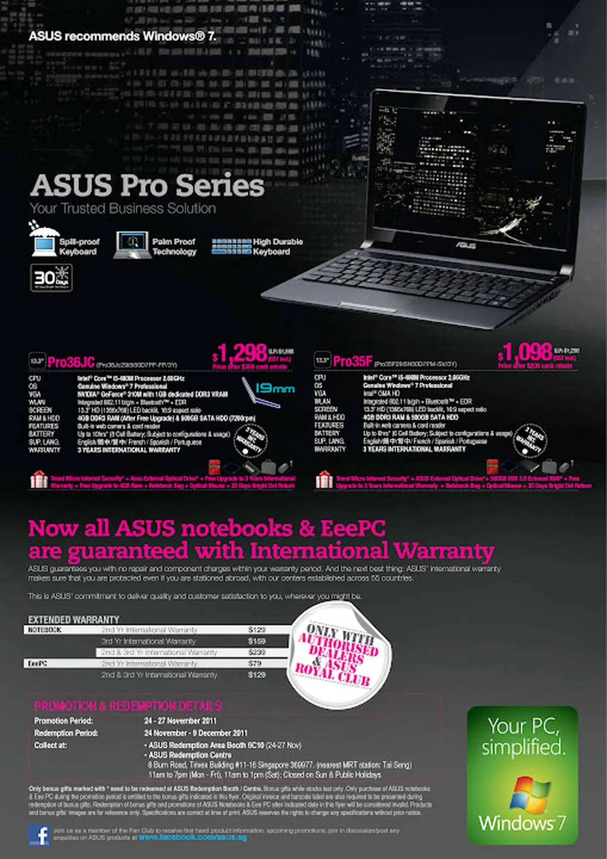 - Promotions: Trend Micro Titanium Internet Security 2011 (worth $39), 2nd year local extended warranty (carry-in, worth $199)