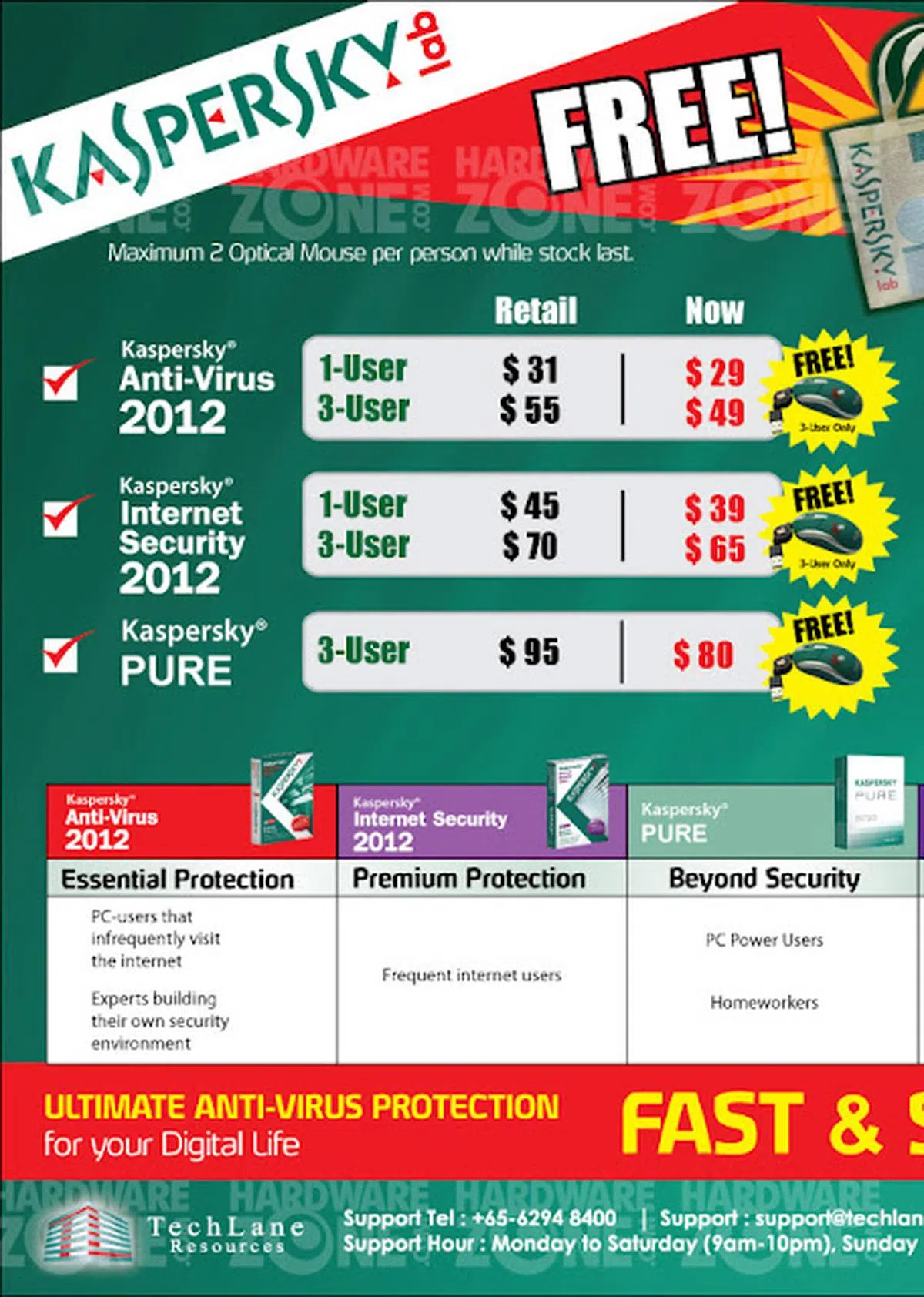 - Promotions: Free Razer gaming mouse and headset, carrying case and McAfee Security Center 15mths (total worth $270)
