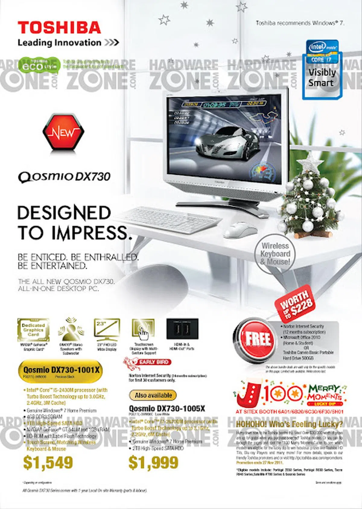 - Promotions: FREE Norton Internet Security, upgrade to 8GB RAM, Microsoft Office Home & Student 2010 OR Toshiba 500GB Portable Hard Drive.