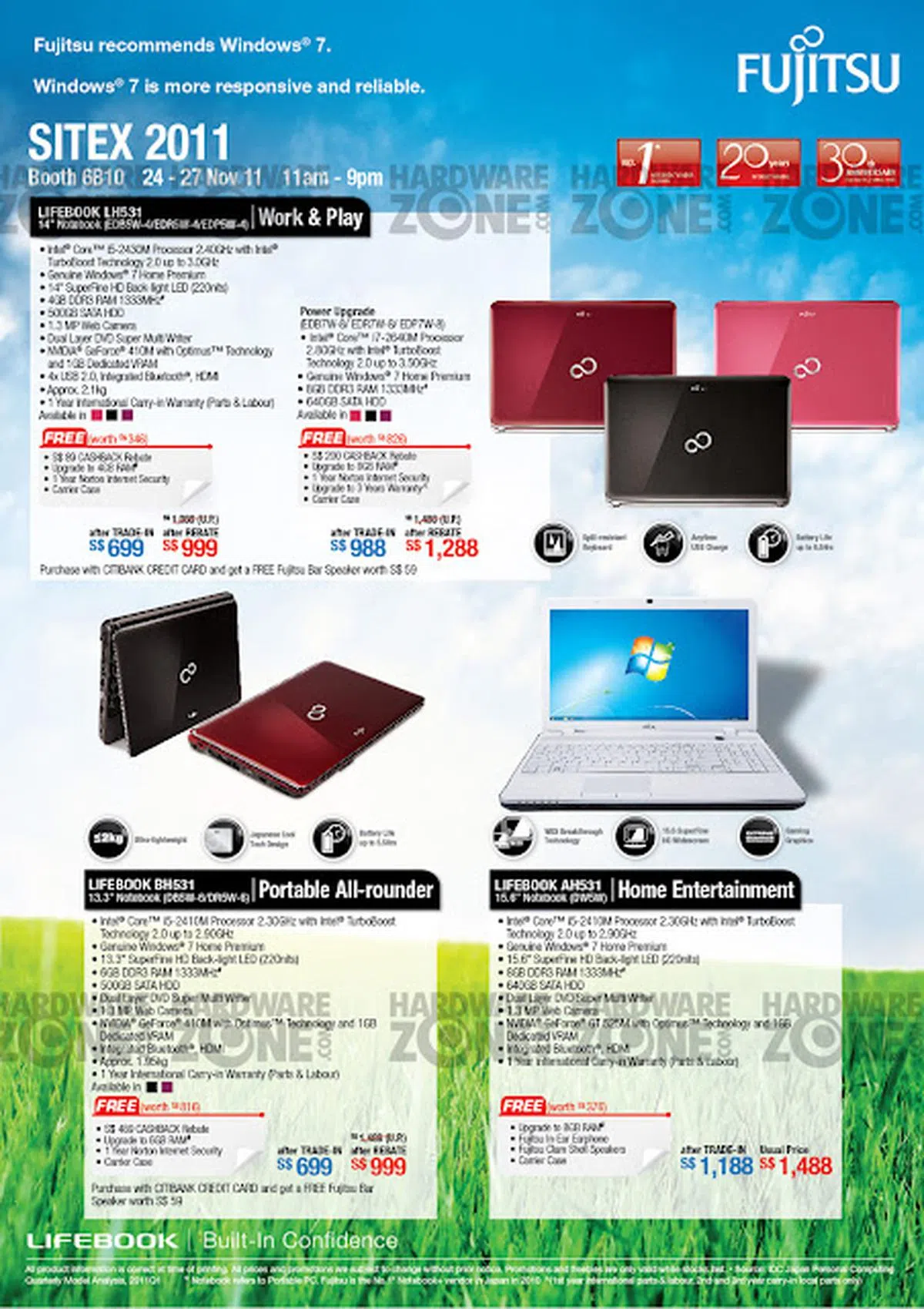 - Promotion: Free Trend Micro Internet Security, free upgrade to 4GB RAM, notebook bag and optical mouse