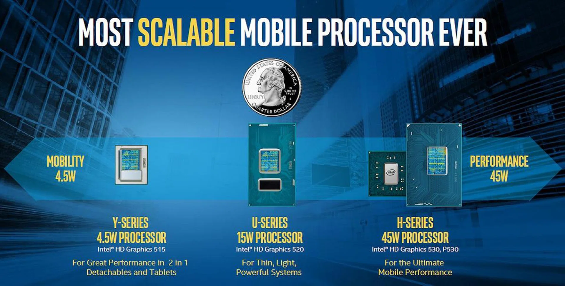 Moving on, we'll cover each of the three series of mobile processors. This slide above sums up the key differences among the Skylake mobile processors.