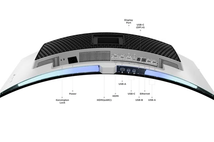 Interestingly, though, Lenovo is also emphasising some of the ports on the back of the monitor. That’s because the 34WD-10 houses a USB-C port capable of output, capped at 140W, if you need to charge a laptop or phone. There’s also a USB hub at the back with three USB-A and two USB-C ports, and a RJ45 port for 2.5G Ethernet passthrough.