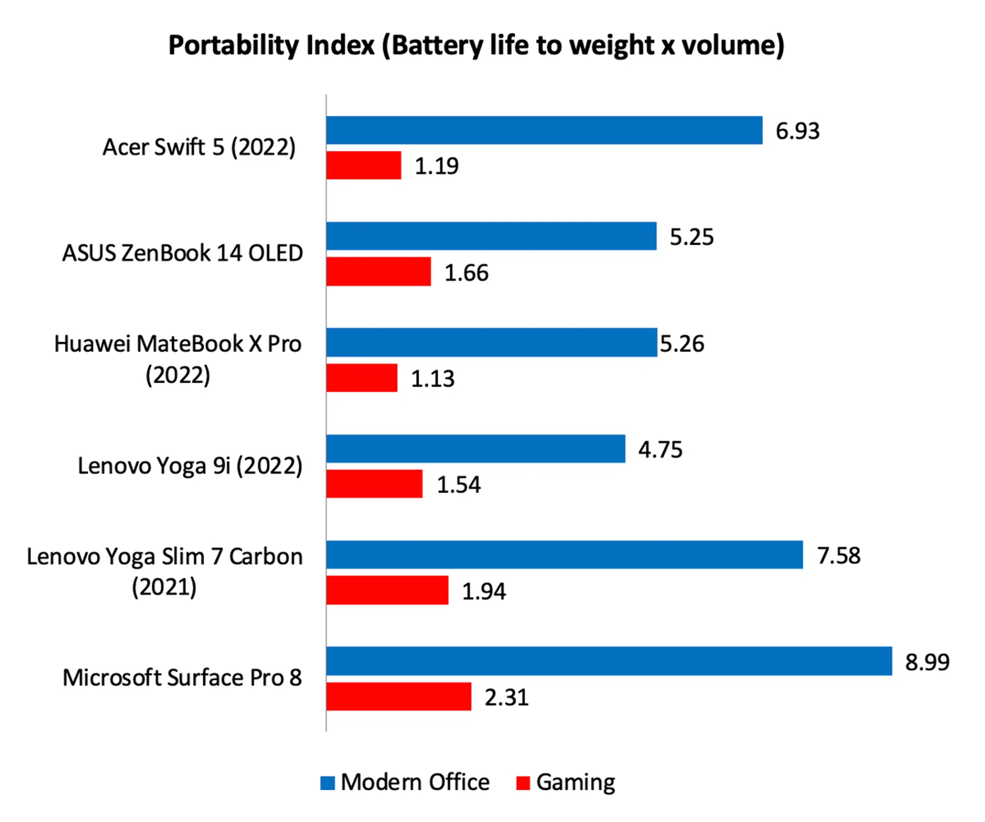 Note: Battery tests were conducted using PCMark 10's battery benchmark with the display set to 100% brightness.