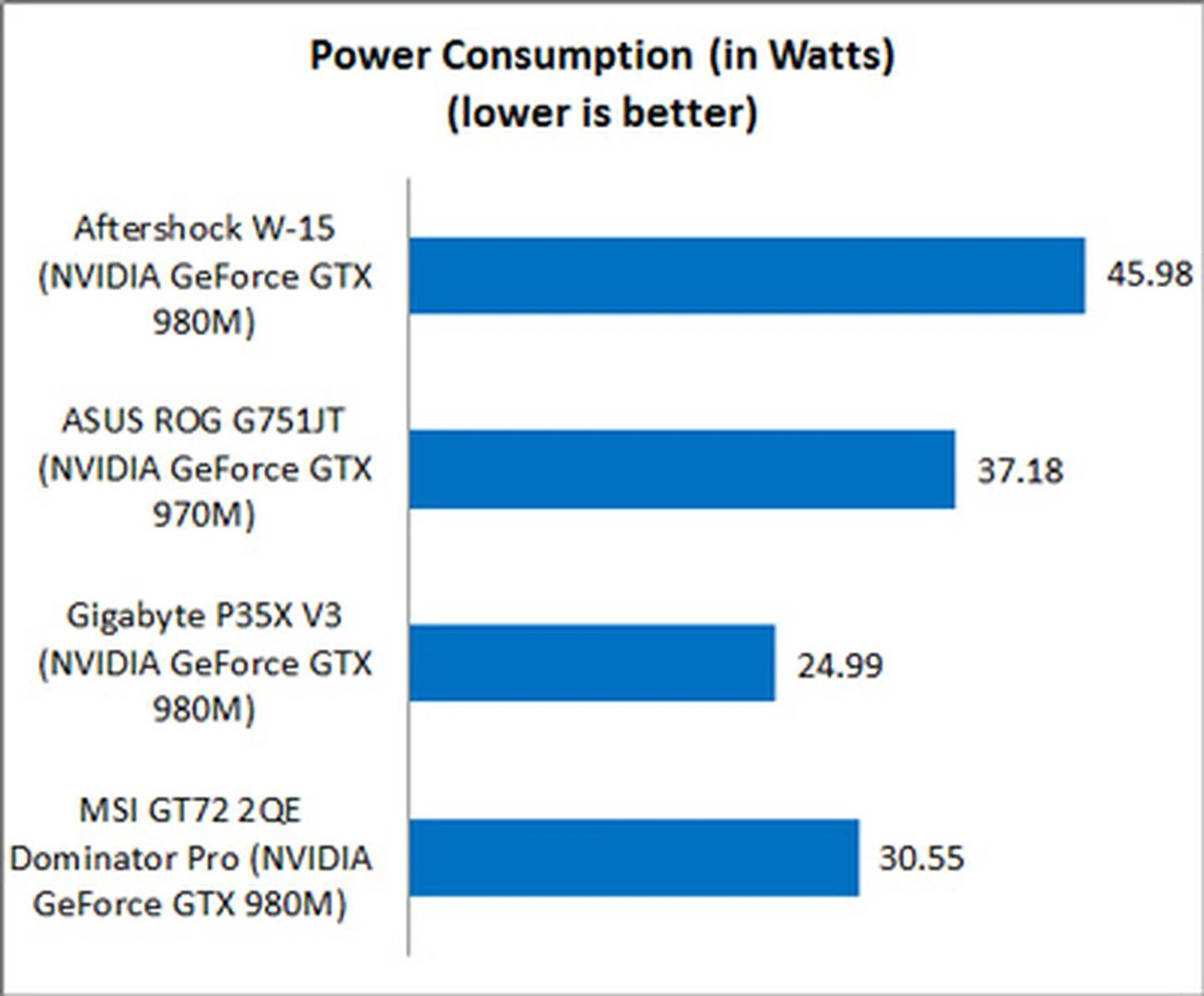 We chose the notebooks above for a number of reasons. We needed a budget machine running a NVIDIA GeForce GTX 900M series, so the ASUS ROG G751JT was a perfect fit. Although it's a bigger machine with a 17-inch screen, it won't matter for most of the performance benchmarks. Next we needed a machine that was a similar size and had a similar GPU. The Gigabyte P35X V3 fit that criteria perfectly with a 15.6-inch screen and a NVIDIA GeForce GTX 980M GPU. Lastly, we needed a high-end single GPU machine, which is the MSI GT72 2QE Dominator Pro. The machine has one of the fastest mobile processors with the Intel Core i7-4980HQ and while it's still inferior to the Intel Core i7-4790K found in the W-15, it's the fastest we could find among our reviewed notebooks.