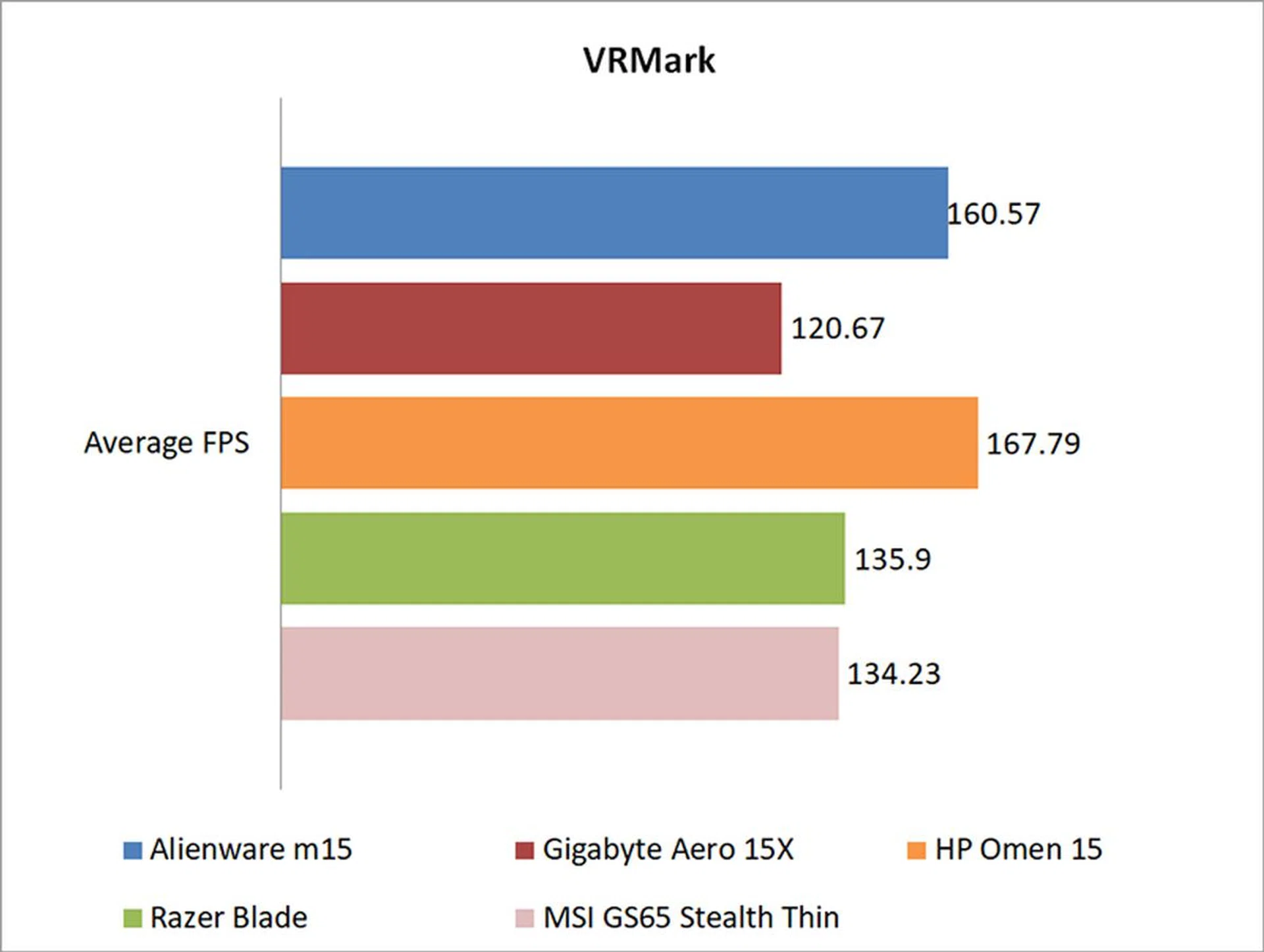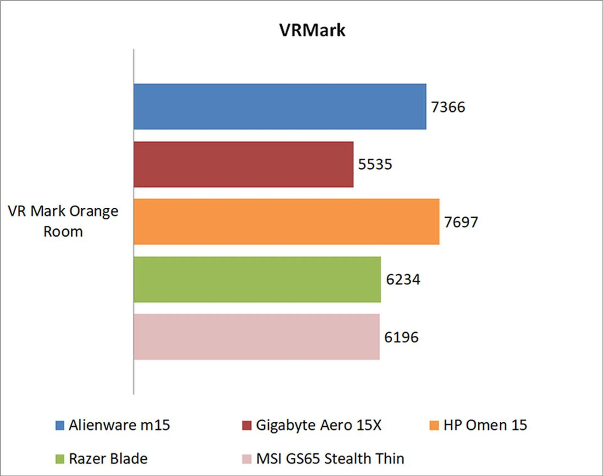 Futuremark’s VRMark benchmark is designed to assess a PC’s ability to handle high-performance headsets like the HTC Vive and Oculus Rift. If a PC passes the Orange Room test, it is ready for the latter two systems. The benchmark also has a target frame rate of 109FPS, and I've included the average FPS each notebook managed to provide a clearer measure of their respective performance.