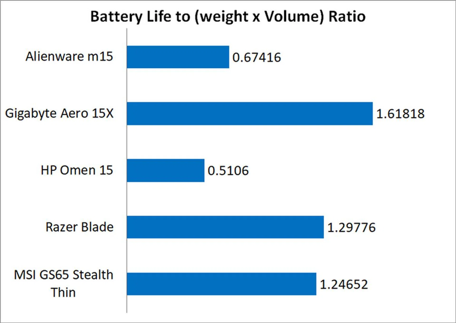 Unfortunately, the Alienware m15 didn't do that well here, owing to its relatively chunky dimensions and mediocre battery life.